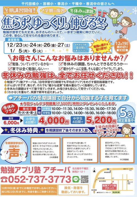 さて塾の方でも「冬季講習」のご案内をする季節となりました。